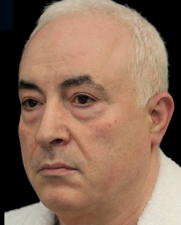 Al paciente de la foto anterior se le realizo un rejuvenecimiento facial integral en la clínica Adhara Aesthetics en Playa del Carmen, se aplico Toxina botulínica en tercio superior de la cara (frente, entrecejo y ojos) para suavizar la expresión y la piel, rellenos dérmicos de acido hialuronico marca restylane en surco nasogeniano, región del pomulo y parpado inferior para reponer volumen, además que se inicio un programa de alimentación y se ayudo a dejar el cigarro.